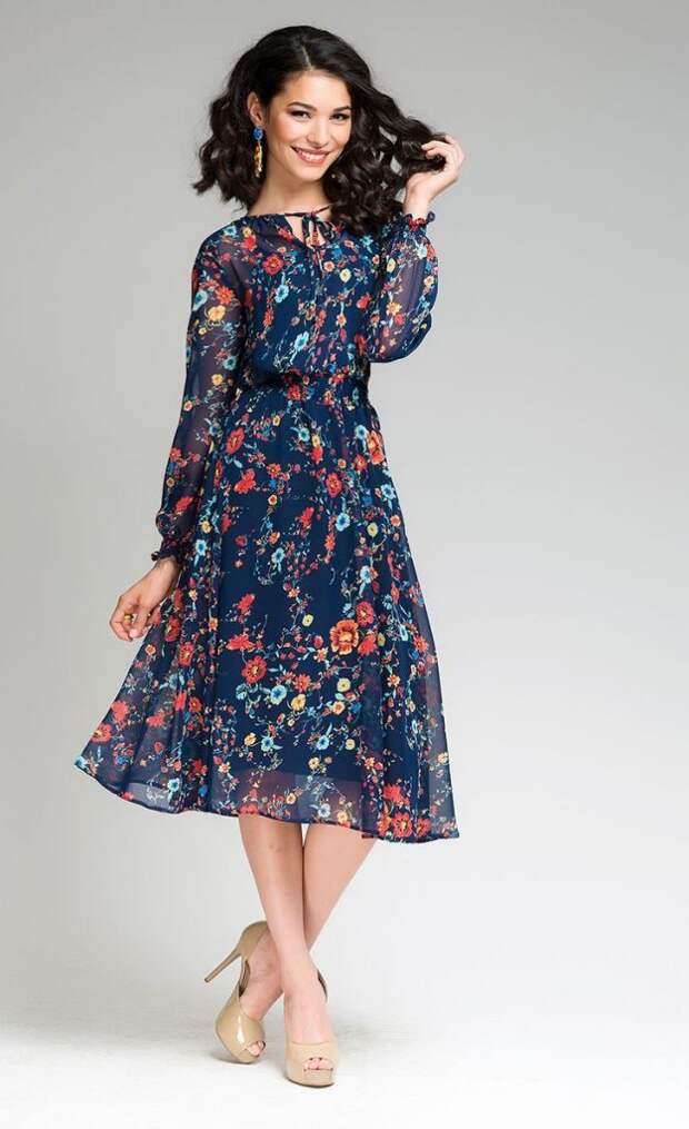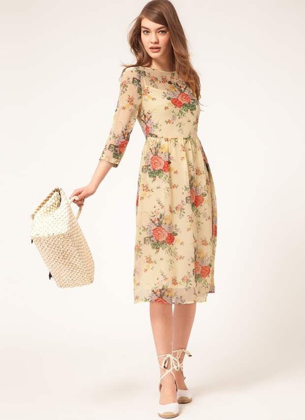 - макси - нет ничего более женственного и романтичного, чем наряд в пол с цветочным рисунком. Длинное платье могут носить девушки любого роста. Особенно красиво выглядит такой наряд на высоких девушках. Лучше выбирать длинное платье с подчеркнутой линией талии. Невысоким девушкам необходимо носить наряды с завышенной талией и обувь на каблуке. Особенно нежно выглядит длинное платье из воздушного шифона. Отличный вариант для лета - платье макси с цветочным принтом в тандеме с широкополой шляпой и очками;