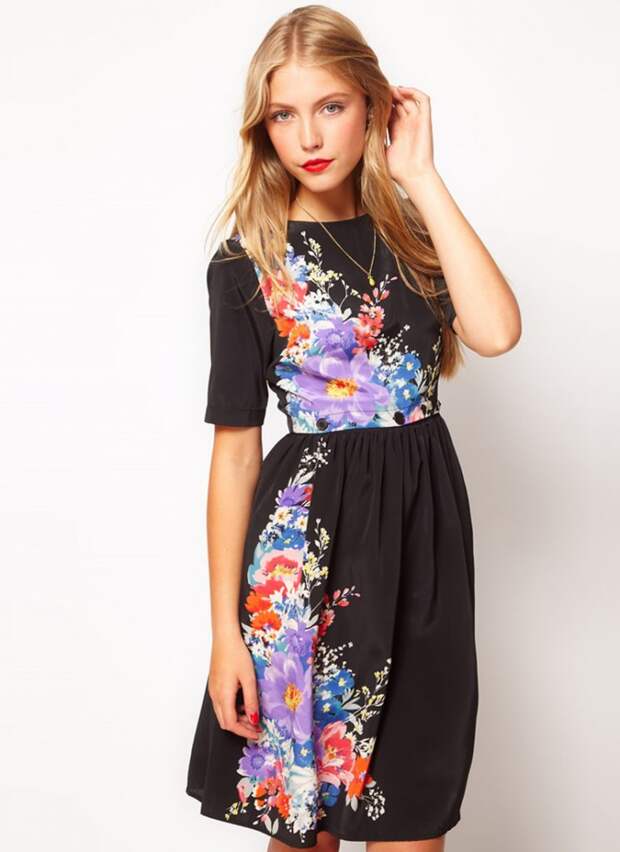 Модные наряды с цветочным принтом наиболее подходят для весенне-летнего сезона. Зимой можно носить платья с небольшим количеством цветков, с одним цветком.