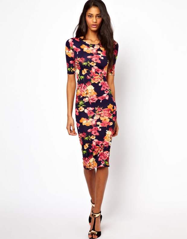 Классическое платье-футляр актуально как всегда. Особенно модными являются модели с цветами только вверху либо только внизу наряда. В тренде и принт, расположенный только по бокам наряда. Такие платья подойдут для полных женщин. На пике популярности яркие платья-футляр длиной миди.