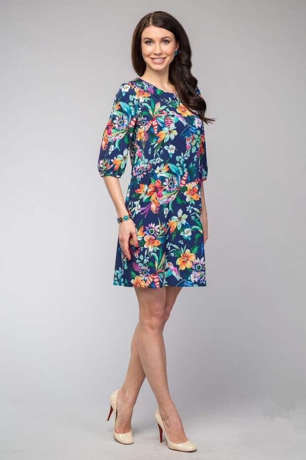 - мини - короткий наряд с цветочными узорами может быть как приталенным, так и легким, струящимся. К нему можно надеть балетки, босоножки, лодочки. Универсальный вариант - бежевая обувь. Белые туфли нужно сочетать со светлыми платьями, черные - с темными. Пышное короткое платье – беспроигрышный вариант для дня рождения.