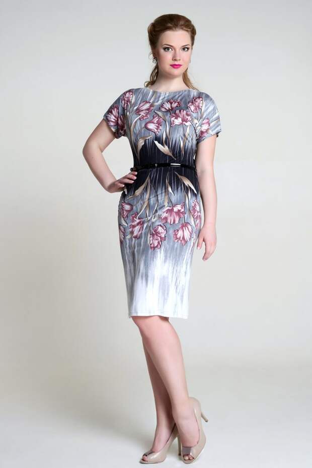 Правильно выбранные цветочные мотивы и аппликации помогут скрыть пышность форм. Например, наряд с цветами и черными вставками по бокам сделает фигуру более стройной. Достичь такого эффекта помогает и вертикальная полоска.